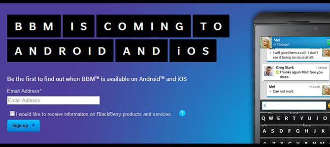 Hari ini di Blackberry Hidup 2013 konferensi, CEO Thorsten Heins Blackberry telah mengumumkan bahwa musim panas ini Blackberry Messenger (BBM) akan tersedia untuk iOS dan Android, dan bisa di dapatkan gratis di Play Store dan App Store.